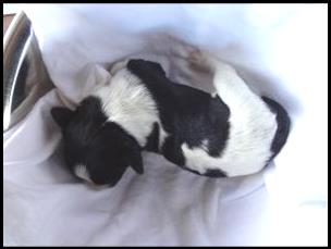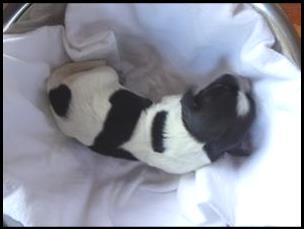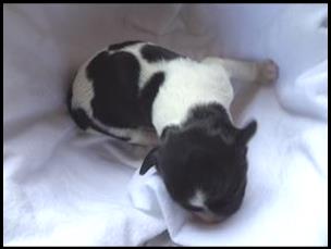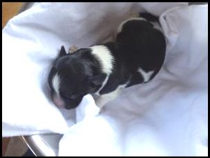 Pupje 1 is een teefje van 376 gram bij haar geboorte