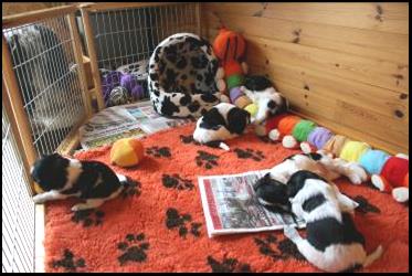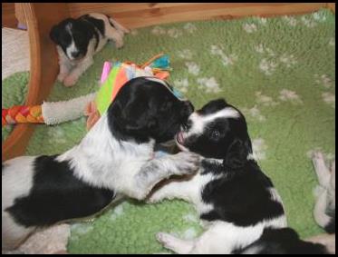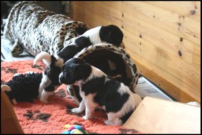Ons surrogaatmoedertje Venco wil ook even de pups verzorgen. |