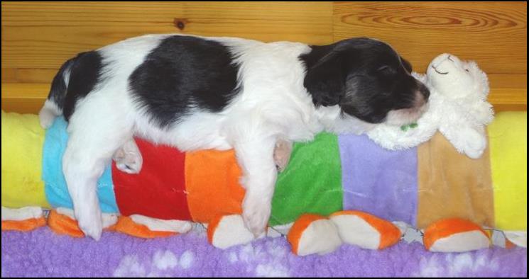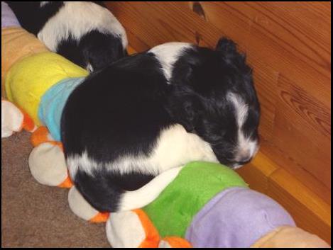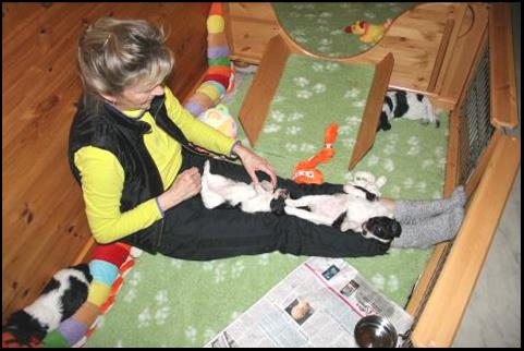 Marjo geeft een reiki sessie. De pups zijn helemaal in trans, kijk maar naar Blija. |