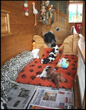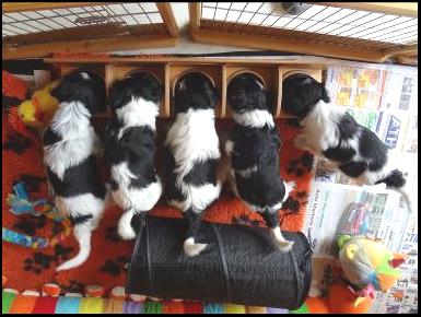 De tijd vliegt hier voorbij en we zijn alle dagen druk met de pups en de visite, daarom even geen tijd gehad om de website bij te werken. Hieronder stellen we de pups bij naam voor en zetten we nog een paar foto’s neer. Wel minder dan de vorige keren, tja, we zijn nu eenmaal liever met de pups dan met de administratie. |