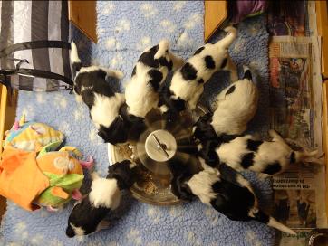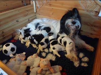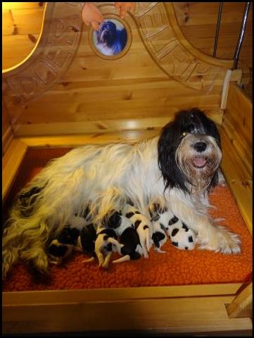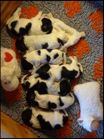 Op 20 januari 2021 zijn de pups geboren: 3 reuen en 4 teefjes. Ze groeien heel erg goed dankzij de slagroommelk van mama Dufy. |